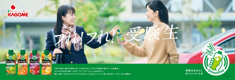 カゴメ 野菜生活100Smoothie 受験生応援 グラフィック/ムービー制作 Pr=守安 / AD・企画・映像演出=鎌田 / D・企画・映像演出=飯塚 / Ca=細川 ・プロモーション企画 ・グラフィック制作 ・ムービー制作 ・スチール/ムービ撮影 ・撮影進行 ・撮影コーディネート ・キャスティング 2025年9月9日 投稿先 ADVERTISING, DESIGN, MOVIE, PHOTO, RETOUCH, 食品・飲料 ← 過去の投稿へ 次の投稿へ →